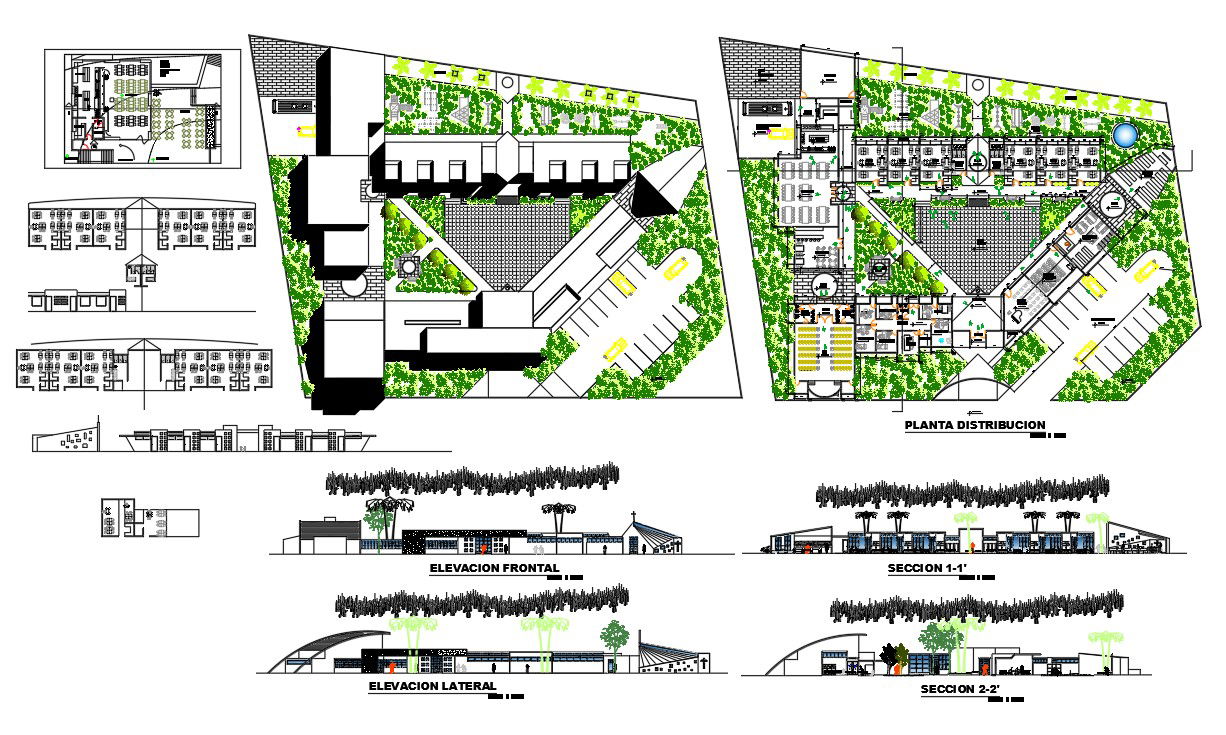 University project details in a class room, auditorium details, sport ground, garden, teacher's room, layout plan, elevation details , University project design draw in autocad format.