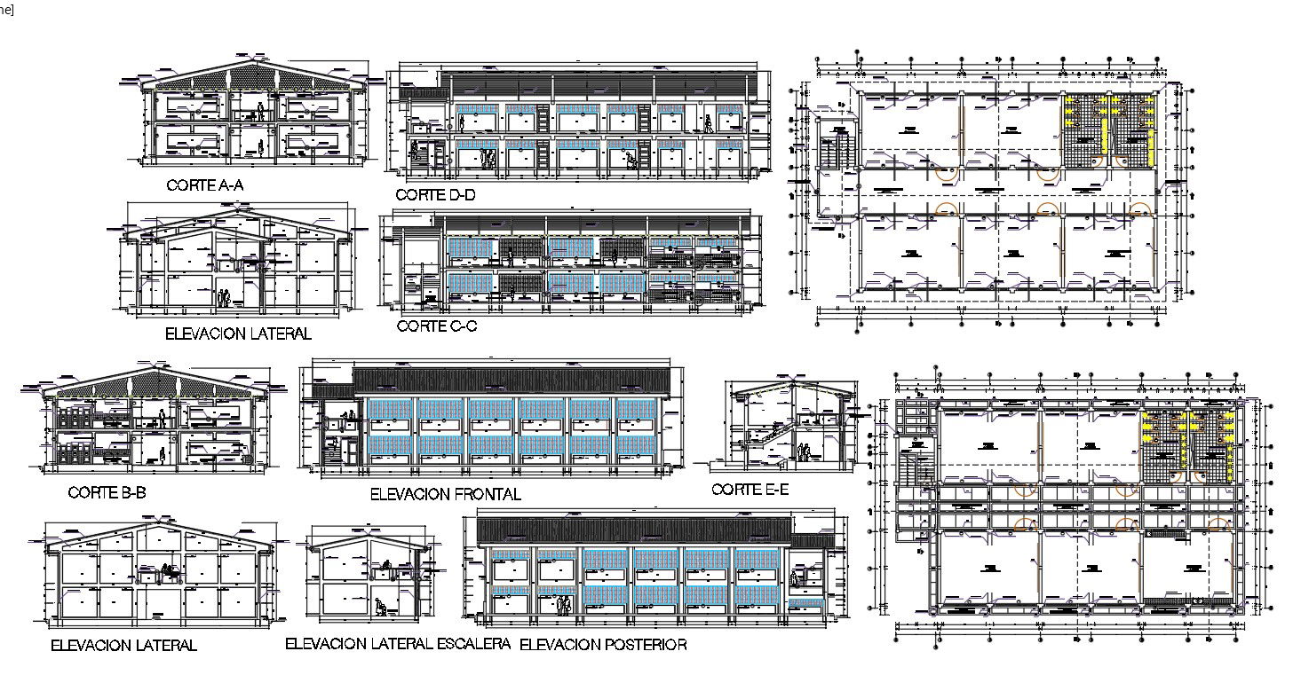 Engineering college details in a layout plan, elevation details , class room, wooden details , computer lab, toilet, Engineering college design draw in atocad software ,