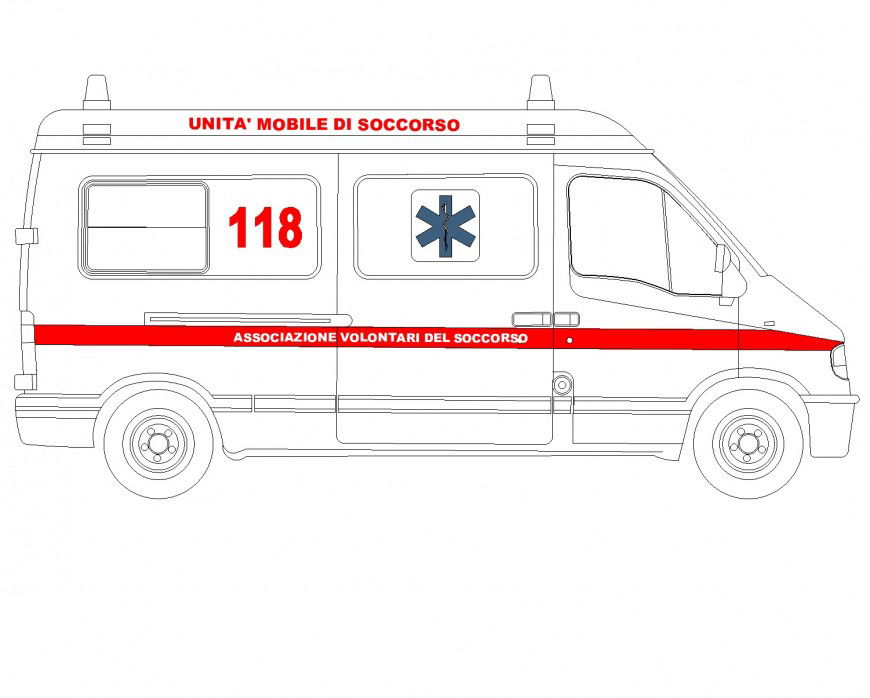 Side Ambulance plan autocad file, mirror detail, wheel detail, etc.