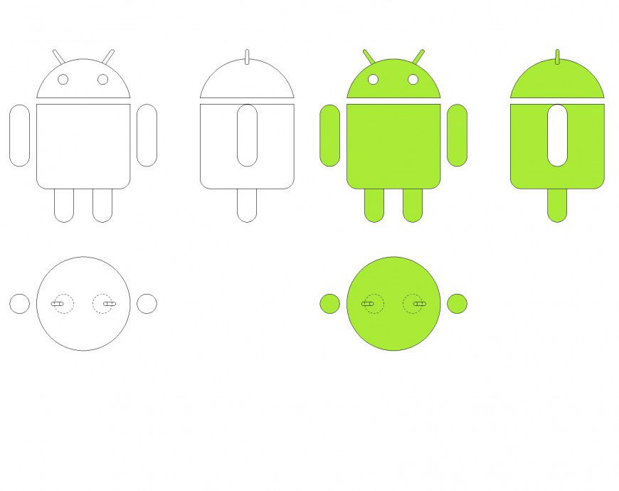 Android logo plan layout file, green color detail, two eyes detail, etc.