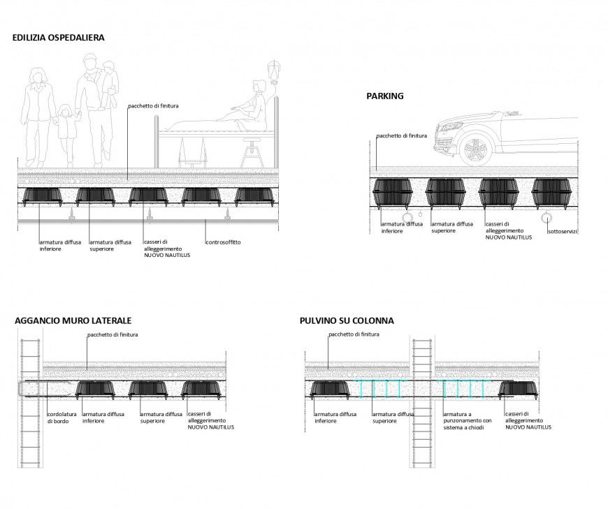 Applicazioni section plan layout file, concrete mortar detail, bolt nut detail, reinforcement detail, car wheel detail, naming detail, etc.