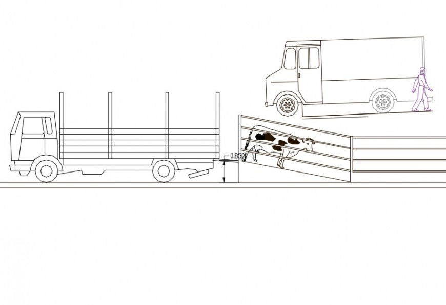 Trolley truck elevation plan layout file, side elevation detail, trolley detail, etc.