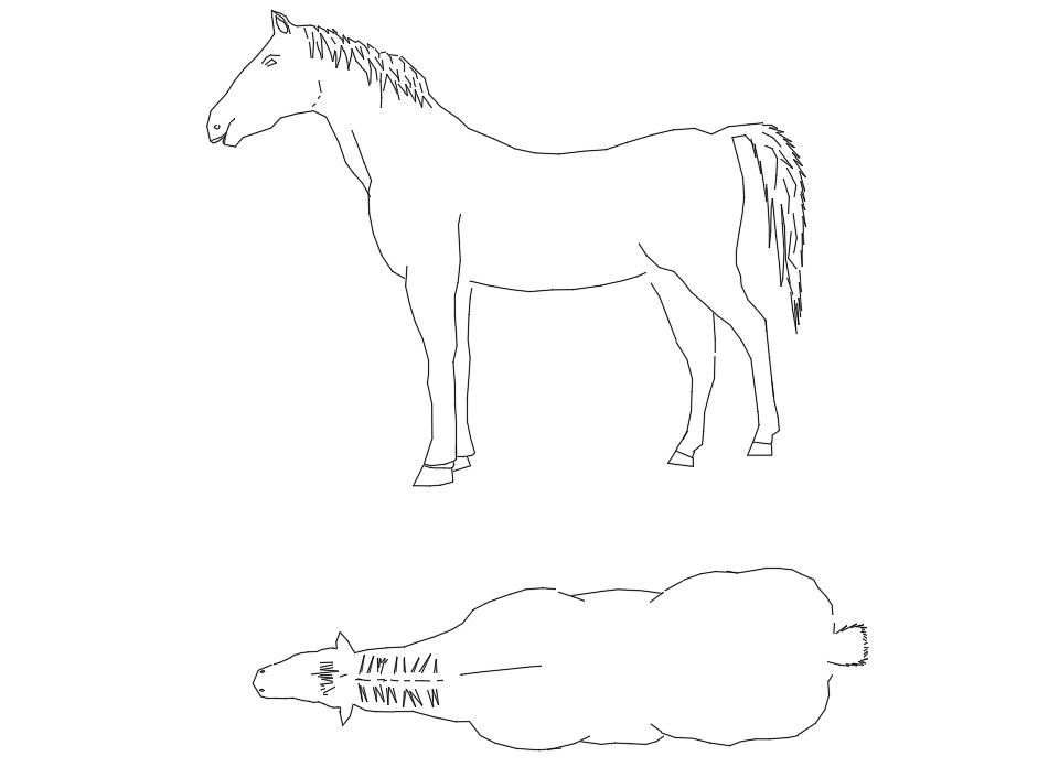 here we are going to describe horse design in auto cad. Download free Auto cad Drawings and Cad Blocks and Cad Details, Auto cad files and Cad dwg. it is the 2d animation. it is side view and top view design.
