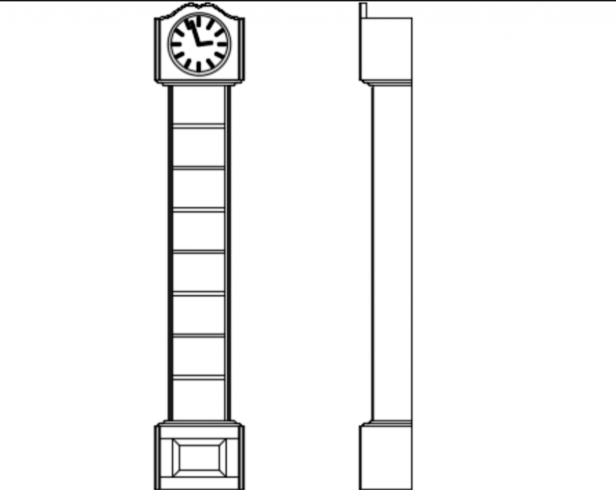 Tall clock front view,here there is 2d detailing of tall clock detailing in 2d format