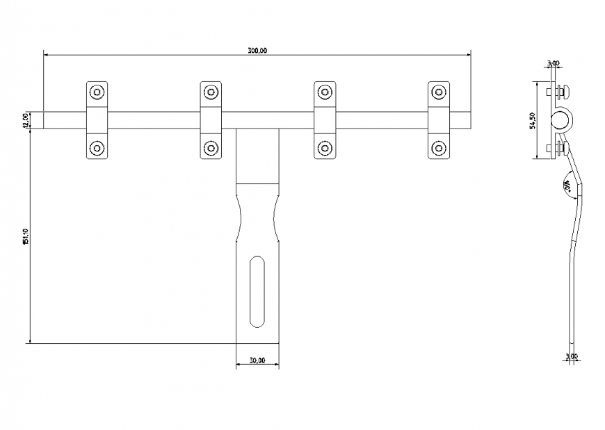 Hasp and staple plan dwg file, dimension detail, naming detail, bolt nut detail, etc.