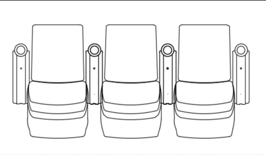 Reclinable theatre cinema seat,here there is top view of seat , recliner seat detailing in 2d