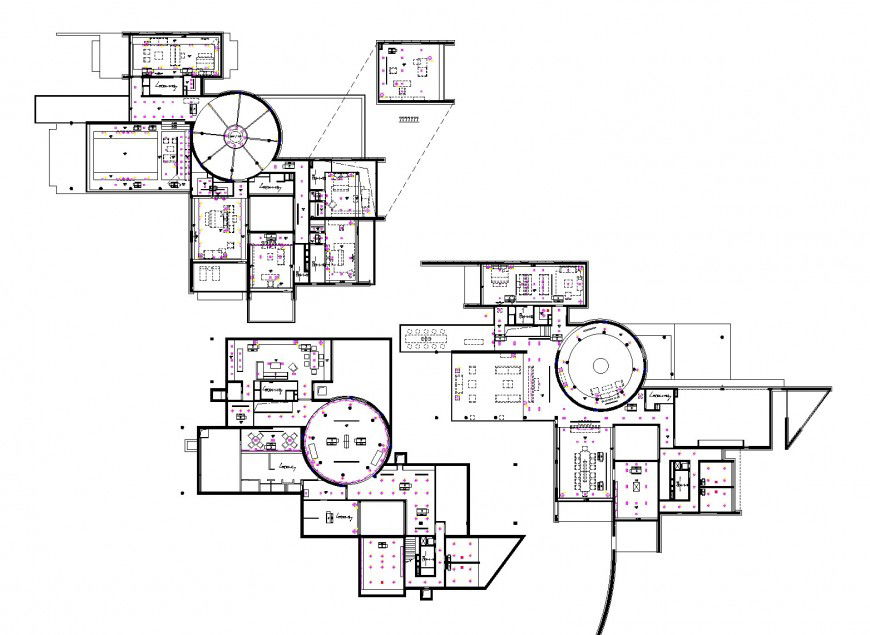 Building CAD ceiling map layout file, furniture detail in door, window, table, chair, bed and cub board detail, landscaping detail in tree and plant detail, etc.