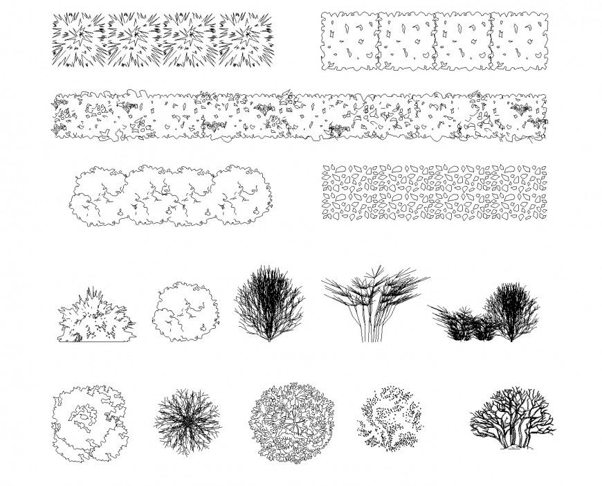 Bushes plan dwg file, grass detail, stone detail, etc.