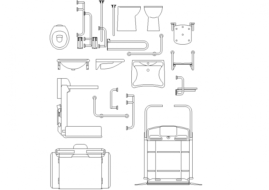 Handicap plan detail dwg file. The plan with the top, front and side view with detailing. Detailing of handicap plans with detailing and convenient for them.