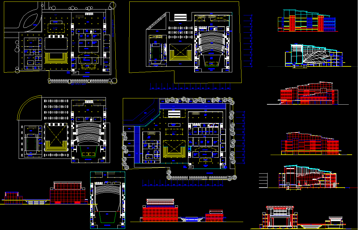 Auditorium 85x60m AutoCAD DWG Plan with Elevations and Sections