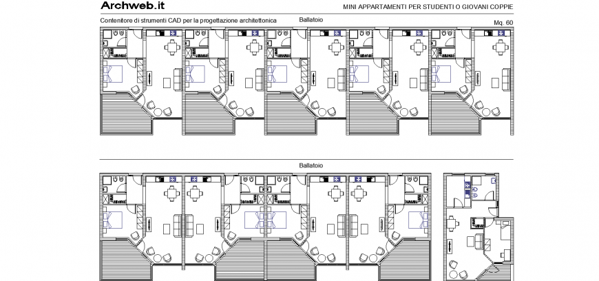 Youth housing plan detail dwg file. The top view plan with detailing of furniture’s such as sofa sets, chairs, tables, partitions, T.V unit, beds, side tables, etc.,