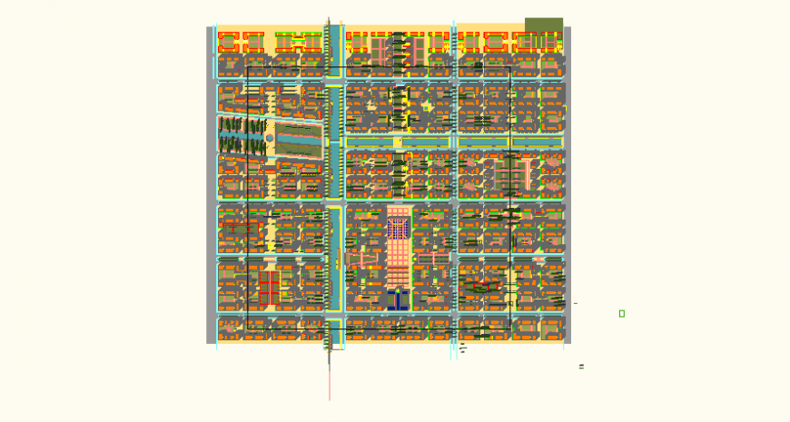 Detail city plan elevation layout file, hatching detail, housing detail, park detail, landscaping trees and plants detail, etc.