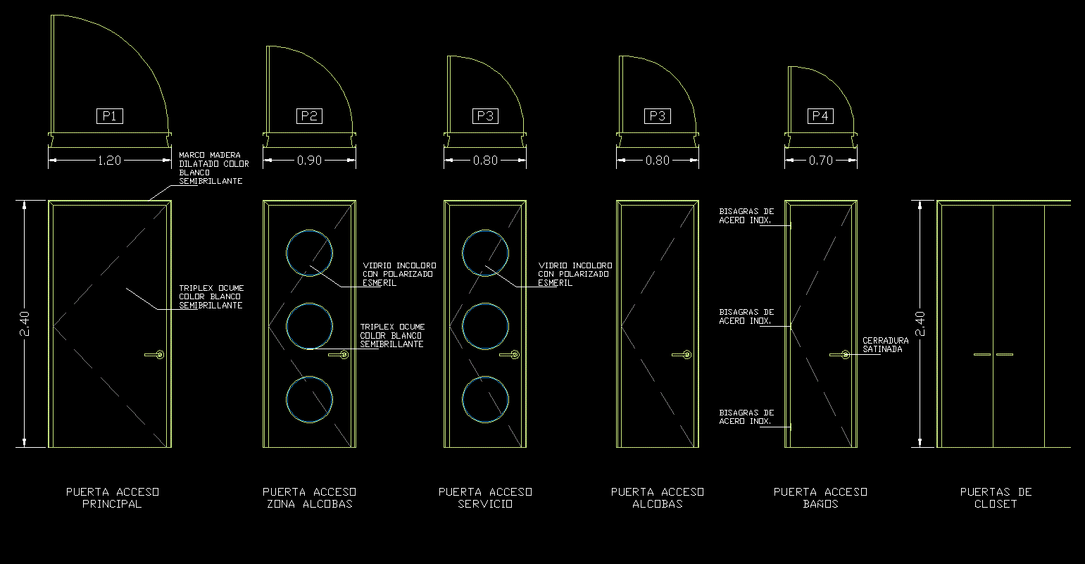 This AutoCAD DWG file features an exclusive collection of white modern door CAD DWG Blocks, ideal for both residential and commercial design applications. The file includes a variety of wooden and glass door types with standard measurements of 1.2x2.4 meters, offering detailed 2D front elevations and sectional plans. Each design is created with precision, highlighting material specifications such as white semi-gloss finishes, glass panel inserts, and steel hinge placements. The set includes designs for main entrance doors, service doors, bedroom doors, and closet doors, ensuring a comprehensive range for interior and exterior architectural planning.