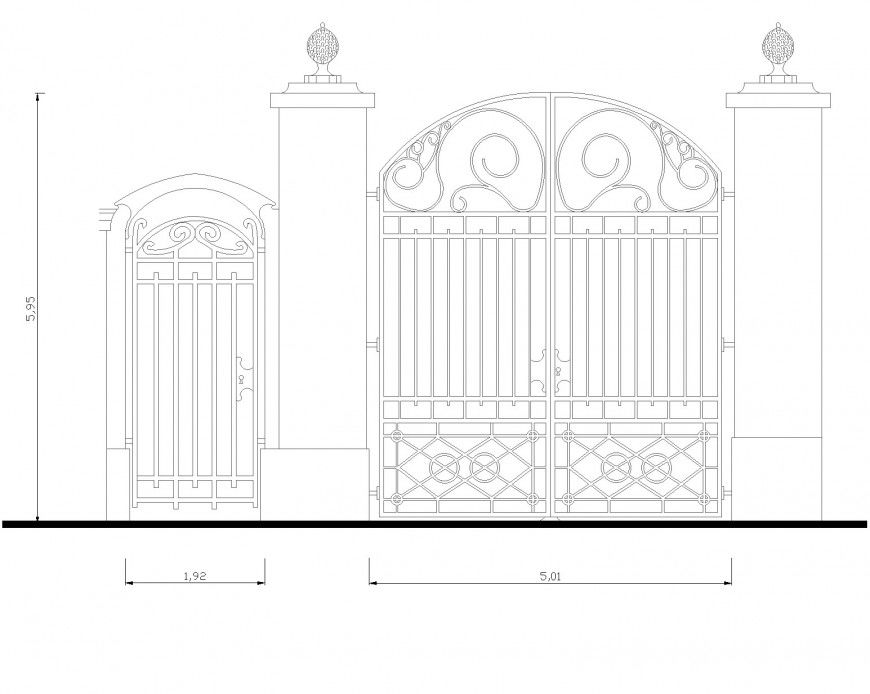 Cancello 2d front elevation dwg file