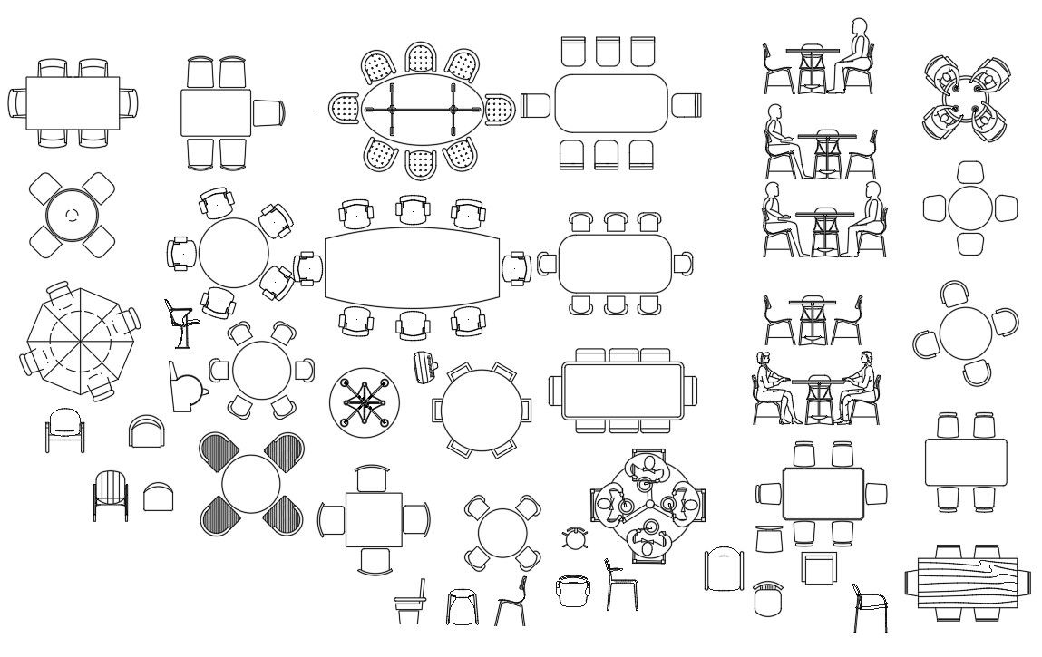 Dining Table CAD Block In DWG File which shows different types of dining table blocks with 2 chairs, 4 chairs, 6 chairs.
