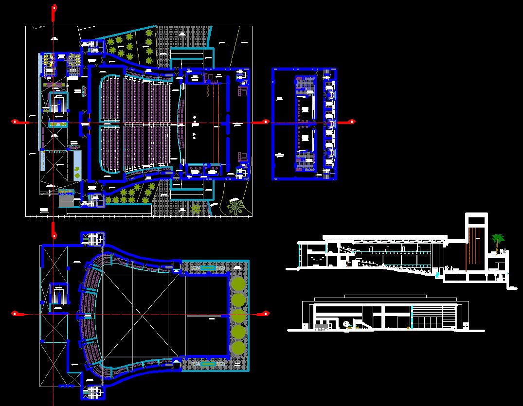 Theatre Design CAD Block with Floor Plans Sections and Seating Layout