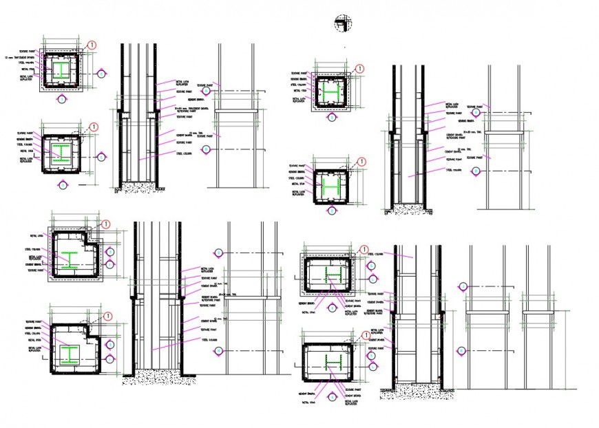 Cadillac Speaker Cad Elevation plan, dimension detail, naming detail, centre line detail, concrete mortar detail, etc.