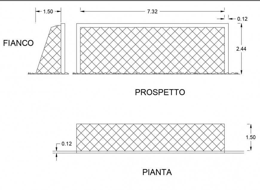 Calico porte plan dwg file, plan and section detail, hatching detail, dimension detail, naming detail, hatching detail, etc.