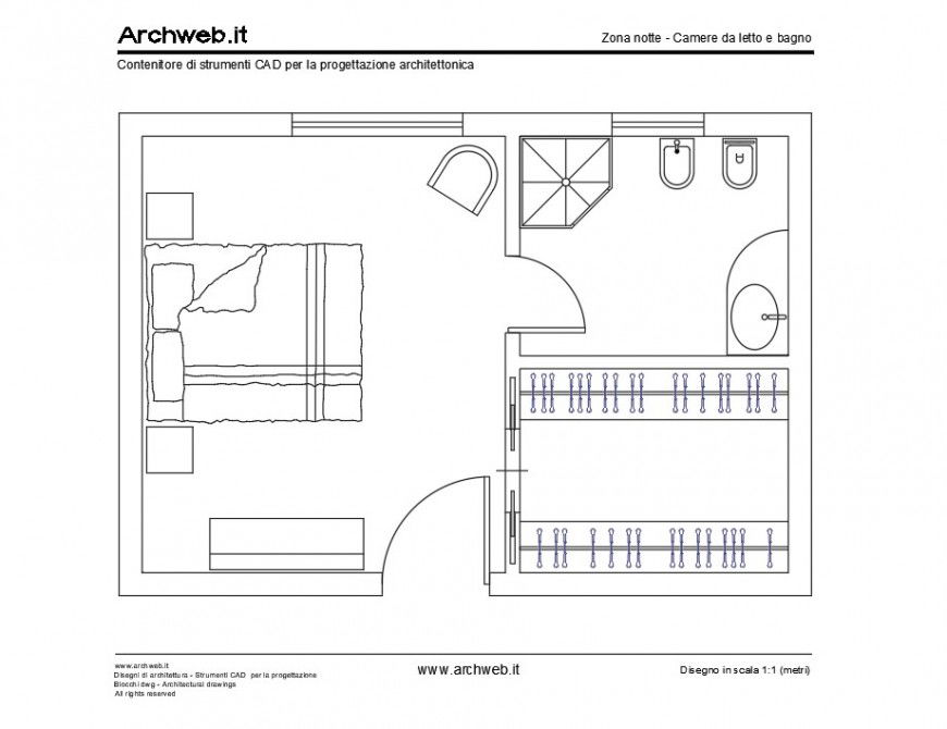 P.G room layout plan layout file, planing design in bed room detail, cub board room detail, toilet detail, furniture detail in door, window, bed and cub board detail, scale 1:100 detail, etc.