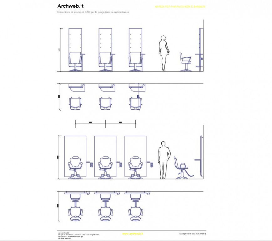 Hairstylist furniture drawings plan, plan and elevation detail, dimension detail, handle detail, section detail, etc.