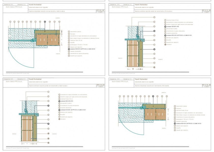 Detail ISOVER isolamento cappotto plan, numbering detail, specification detail, hatching detail, concrete mortar detail, furniture detail in door detail, etc.