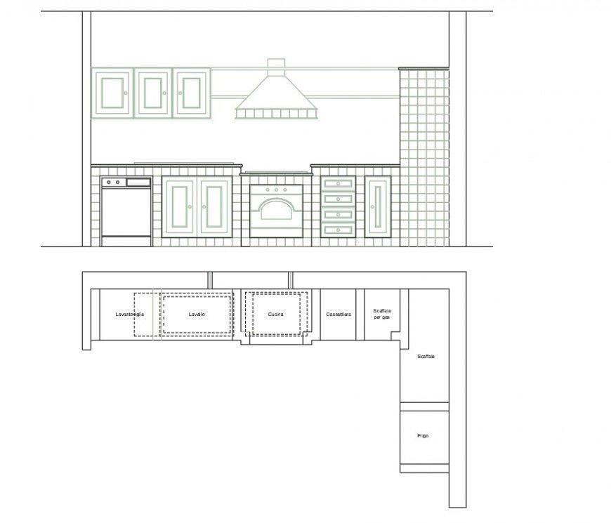 Kitchen plan and elevation dwg file, hidden line detail, furniture detail in cub board and drawer detail, naming detail, etc.