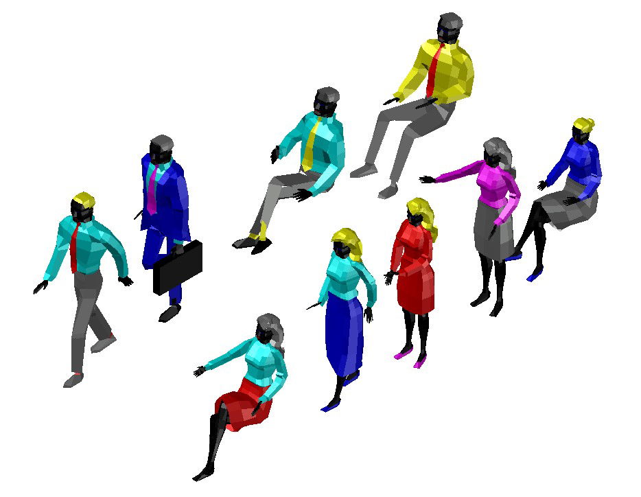 3D Human CAD Block In AutoCAD File which shows 3d human block with seating, standing, walking postures.