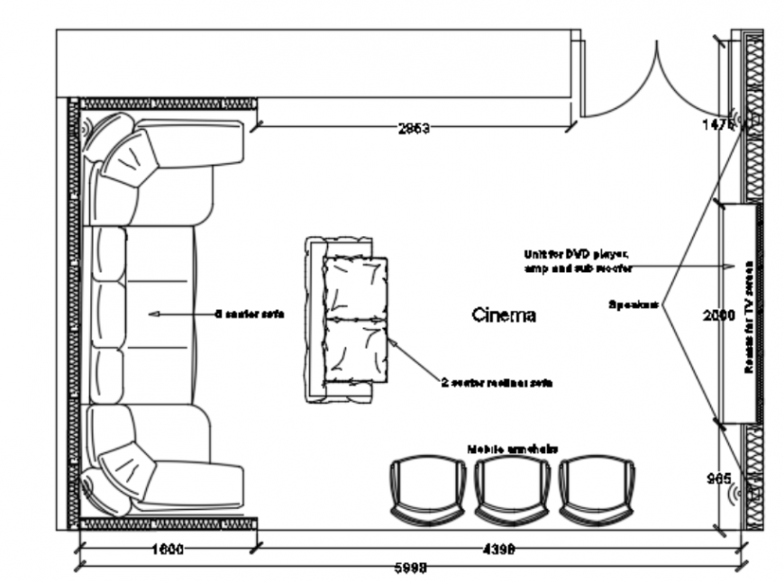 Basement cinema design top view plan