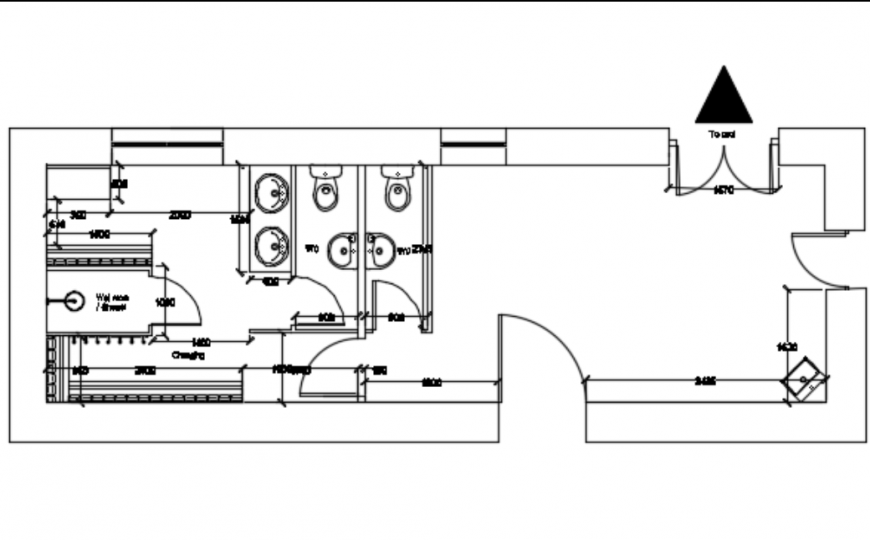 Small pool changing rooms plan details, complete details of a pool with changing room detailing in 2d