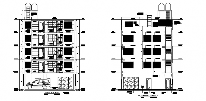 Sectional elevation drawings,here there is front elevation design of a big building , posh building, high rise building design in auto cad format