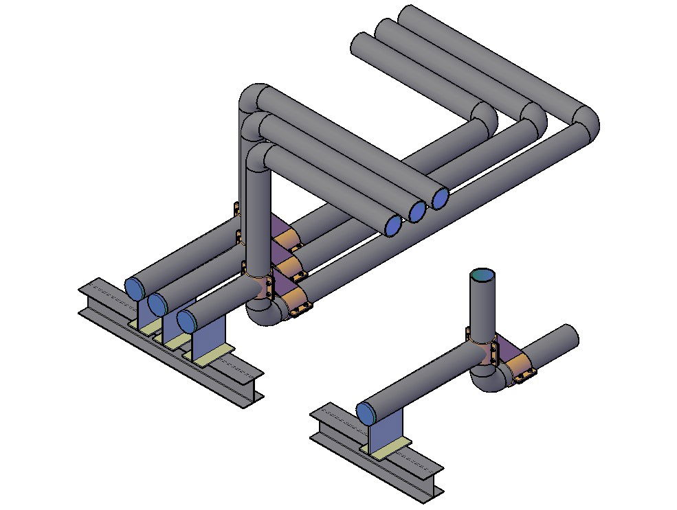 3D Pipe Drawing In AutoCAD File that shows 3d drawing of water distribution pipe system with an isometric view and hatching.