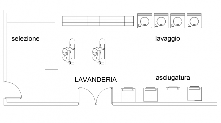 Laundry plan detail elevation dwg file, people detail, machine detail, furniture detail, door and window detail, etc.