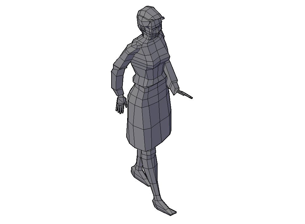 3D Human Block In AutoCAD File which shows 3d drawing of a man with an isometric view with hatching.