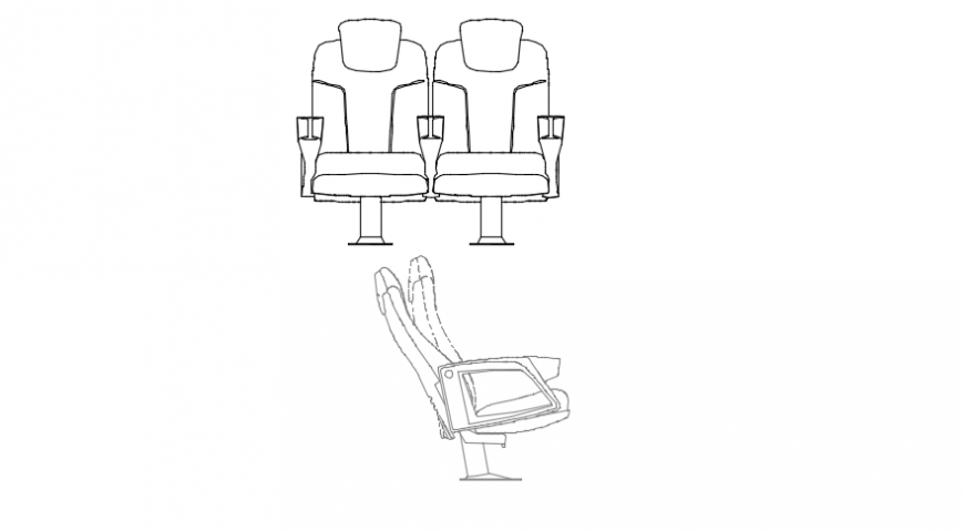 Theatre seating furniture model,Reclinable theatre cinema seat,here there is top view of seat , recliner seat detailing in 2d