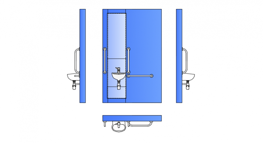 Front sectional detail of bathroom,plumbing and piping details and wash basin details in auto cad format