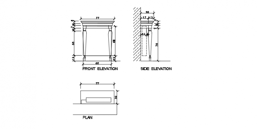 Furniture model 2d detailing,ide view and front elevation details , furniture model drawing etc