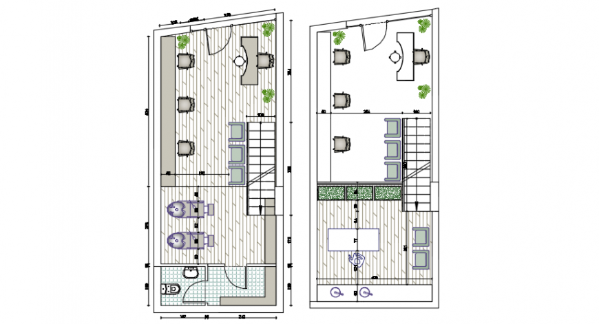 Hair salon design architectural plan, here there is a top view layout plan of a hair saloon, furniture details are shown