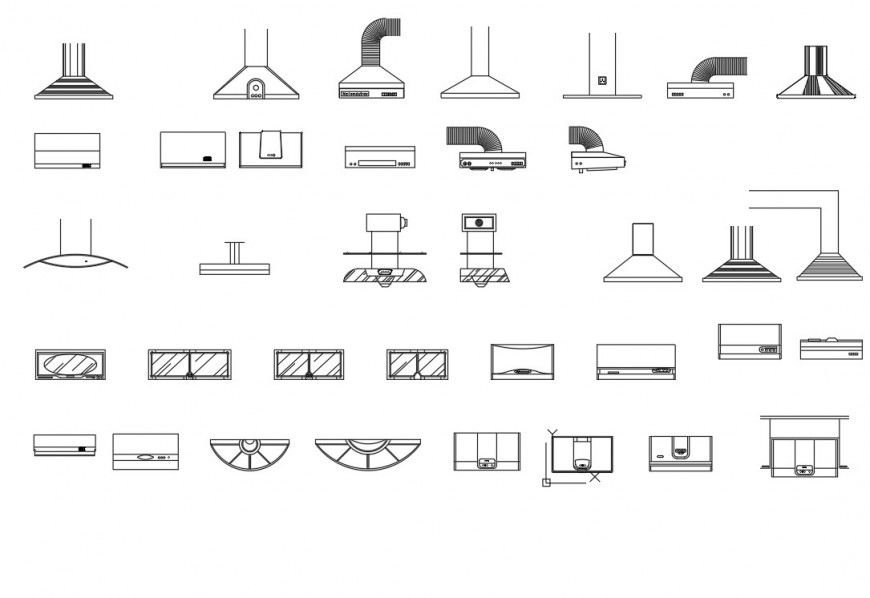 Kitchen hood, different hood detail, hatching detail, pipe line detail, etc.