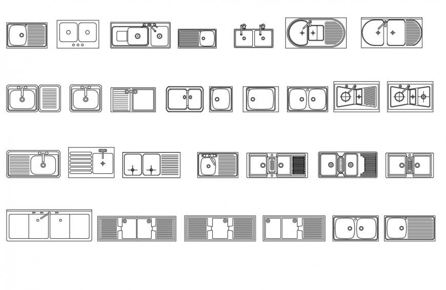 Kitchen sink set top view detail, hatching detail, main hole detail, etc.