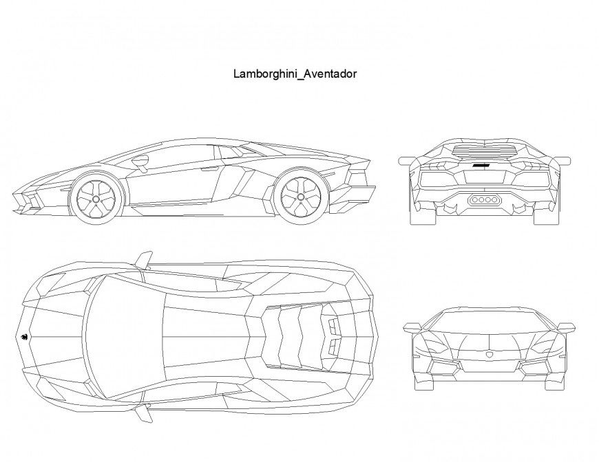 Lamborghini aventador plan, front elevation detail, right elevation detail, right elevation detail, back elevation detail, etc.