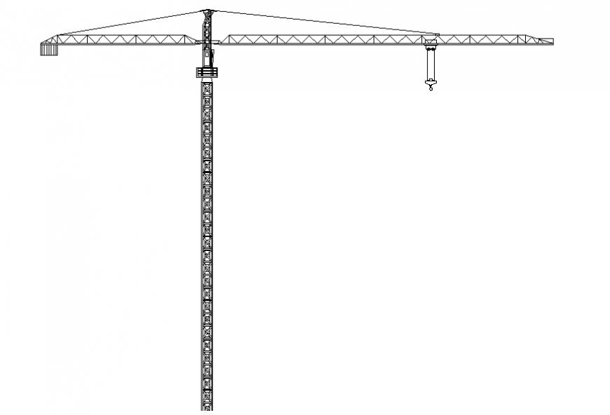 Tower crane detail elevation layout file, main winch and motor detail, climbing support collar detail, operators cab detail, trolley detail, hook block detail, fore pendent detail, etc.