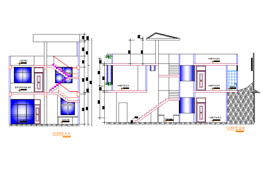 House Elevation Detail in DWG file, & This House 2 Side Elevation Detail in the Drawing, With Furniture Section detail,