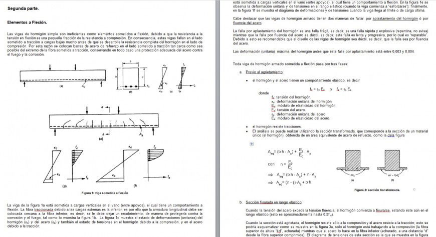 Elements a flexion plan, finger detail, table specification detail, hatching detail, force supplied by detail, equation detail, fc and fs detail, compression and steel detail, etc.