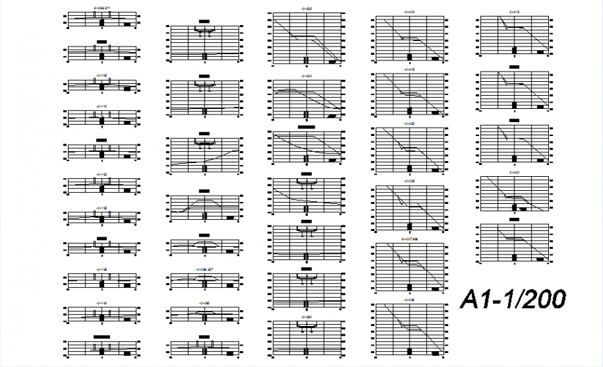 Diagraph bridge plan, leveling detail, section line detail, dimension detail, scale 1:200 detail, leveling detail, etc.