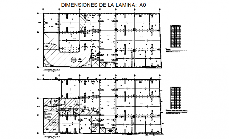 Basement beam plan dwg file, table specification detail, cut out detail, section lien detail, hidden lien detail, numbering detail, hatching detail, scale 1:200 detail, dimension detail, naming detail, etc.