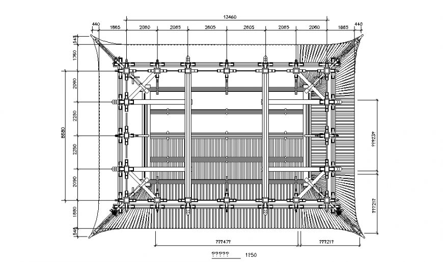 Temple Court roof top view, dimension detail, naming detail, hatching detail, scale 1:50 detail, reinforcement detail, bolt nut detail, etc.