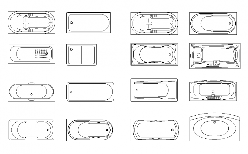 Bathtub 2D Block detail in DWG file, Different type of Bathroom bath tub, & Tup side view show plan.
