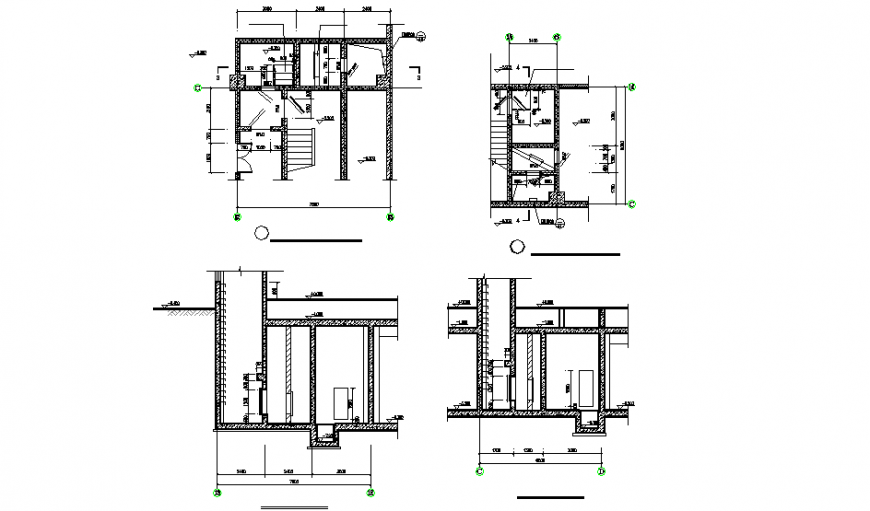 Section garage layout file, dimension detail, naming detail, centre line plan detail, hatching detail, foundation section detail, leveling detail, etc.