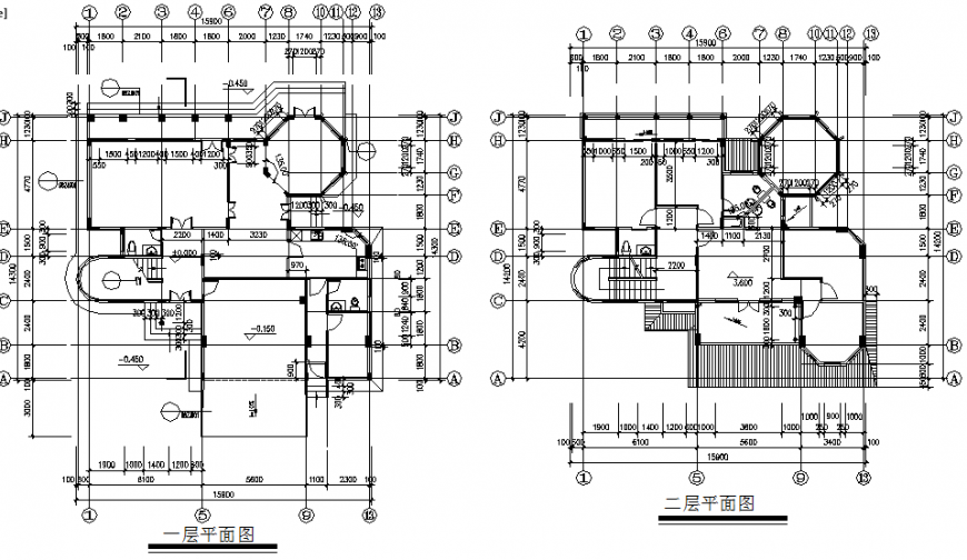 A nice villa cad construction drawing, centre line plan detail, dimension detail, naming detail, stair detail, furniture detail in door and window detail, hatching detail, leveling detail, etc.
