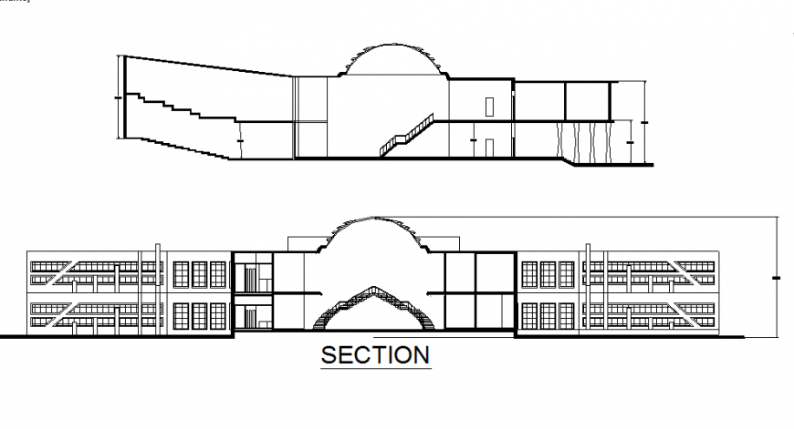 Section School commercial building, section A-A’ detail, section B-B’ detail, dimension detail, furnitutre detail in door and window detail, arc design detail, dimension detail, naming detail, stair section detail, hatching detail, etc.
